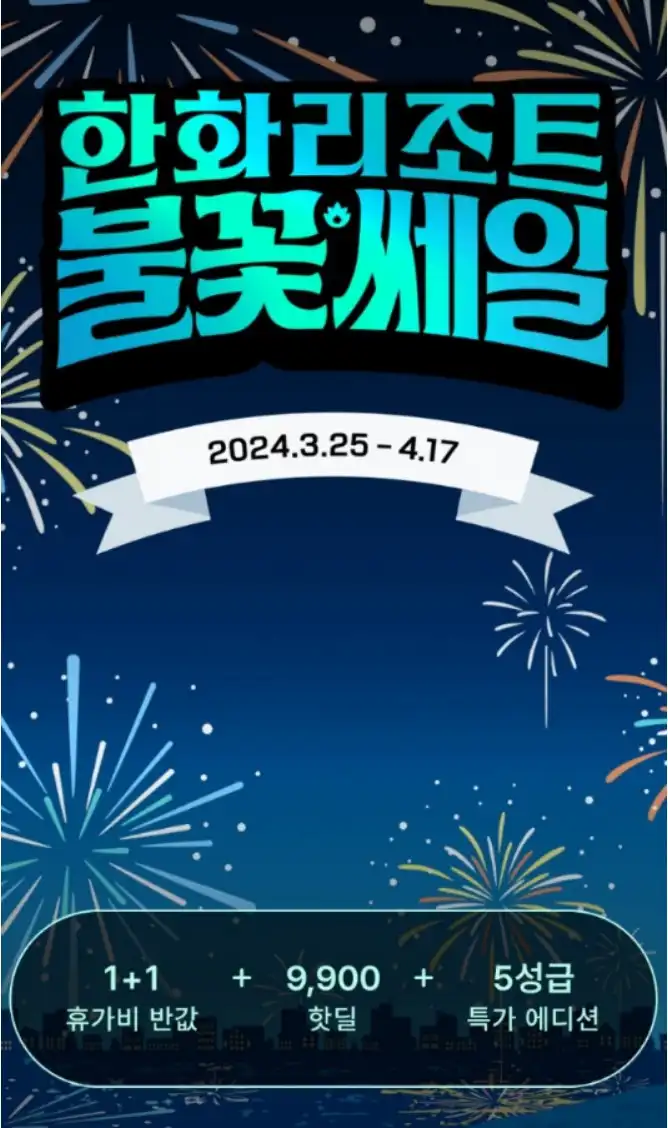 한화 리조트에서 말도 안되는 불꽃세일을 진행합니다.